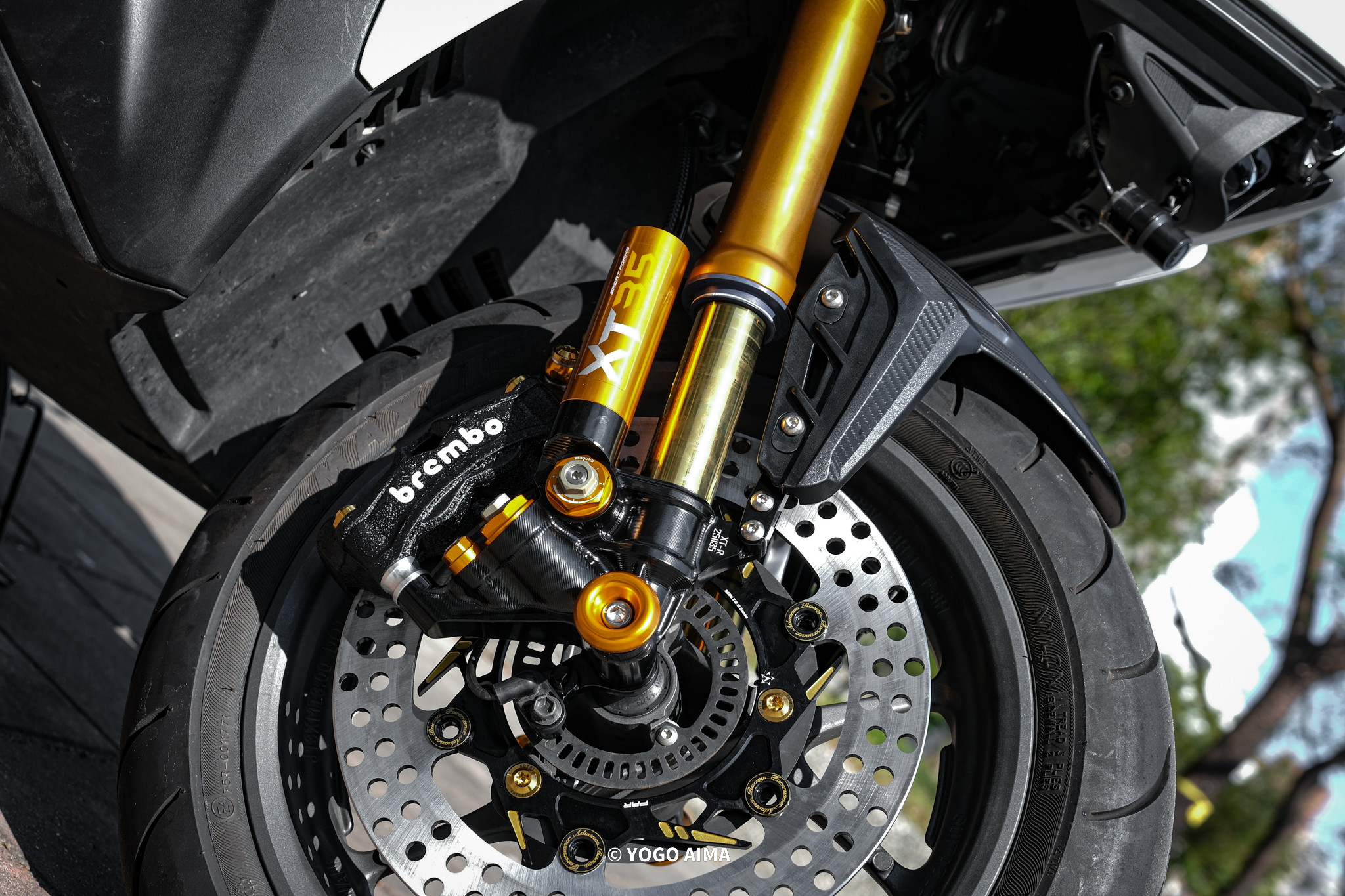 前端採用 鯊魚工廠 XT35 倒立式前叉,