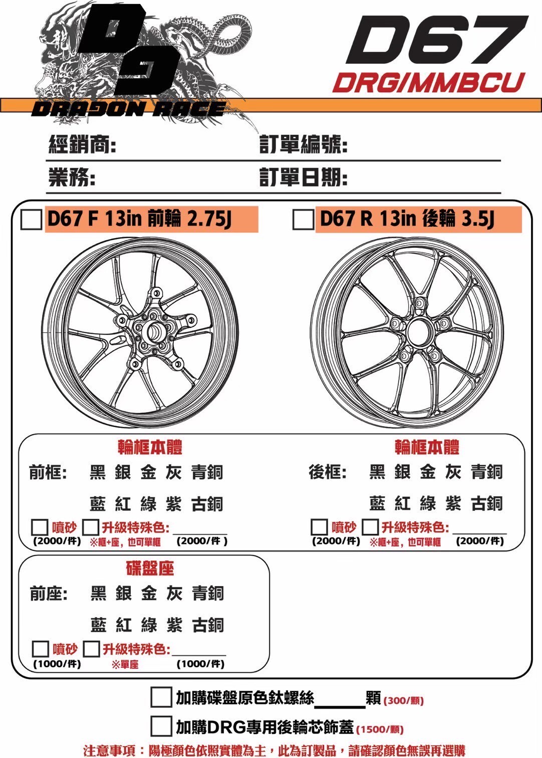D67 不只是外型升級,更是性能進化的起點。無論日常騎乘還是進階改裝,DG D67 都能為你帶來兼顧美感與性能的絕佳體驗。