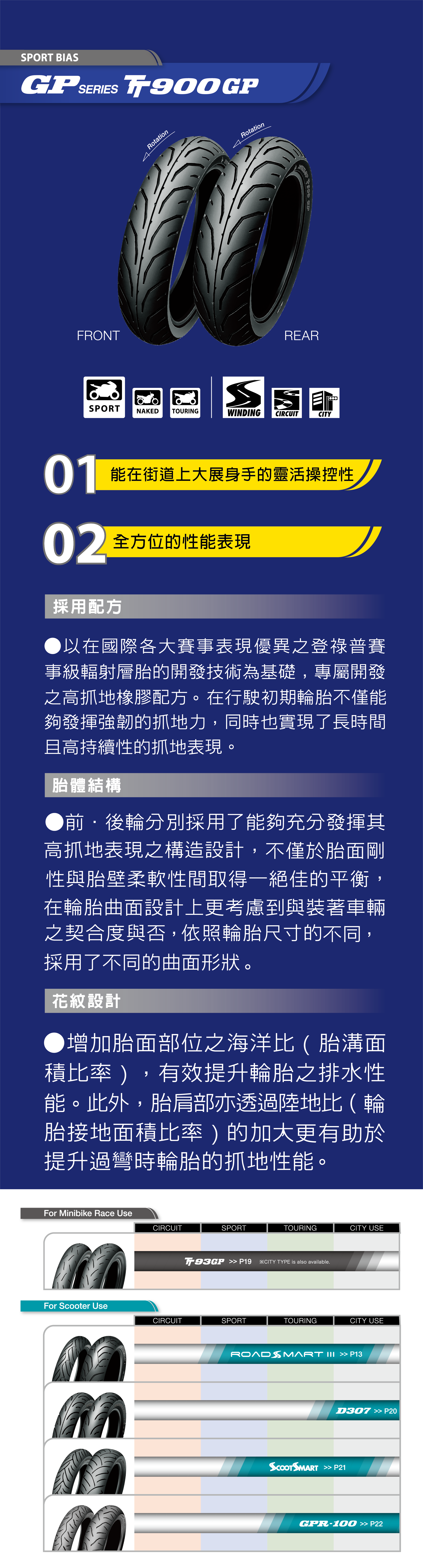 高抓地表現之構造設計,不僅於胎面剛