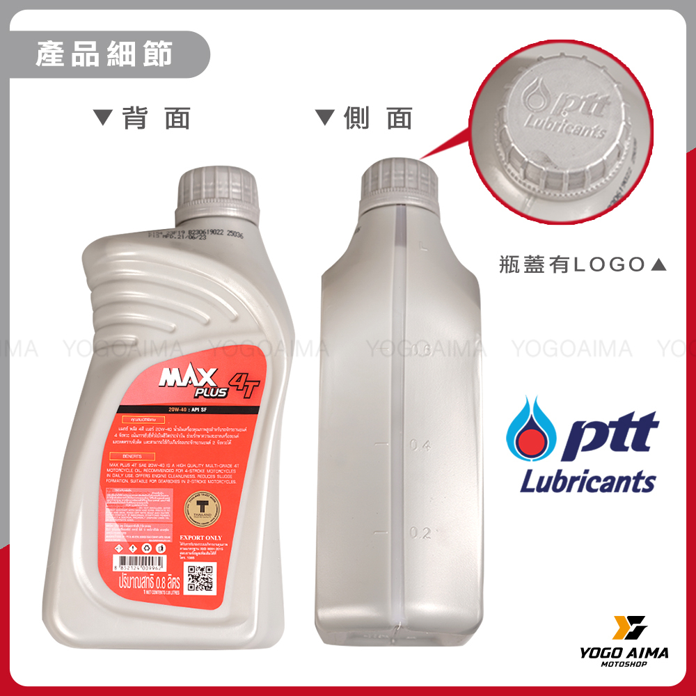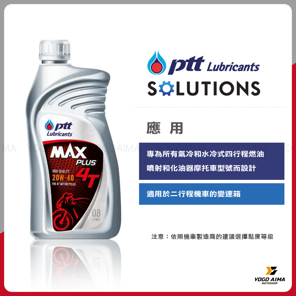 PTT MAX PLUS 4T 20W40/MB/0.8L 機油