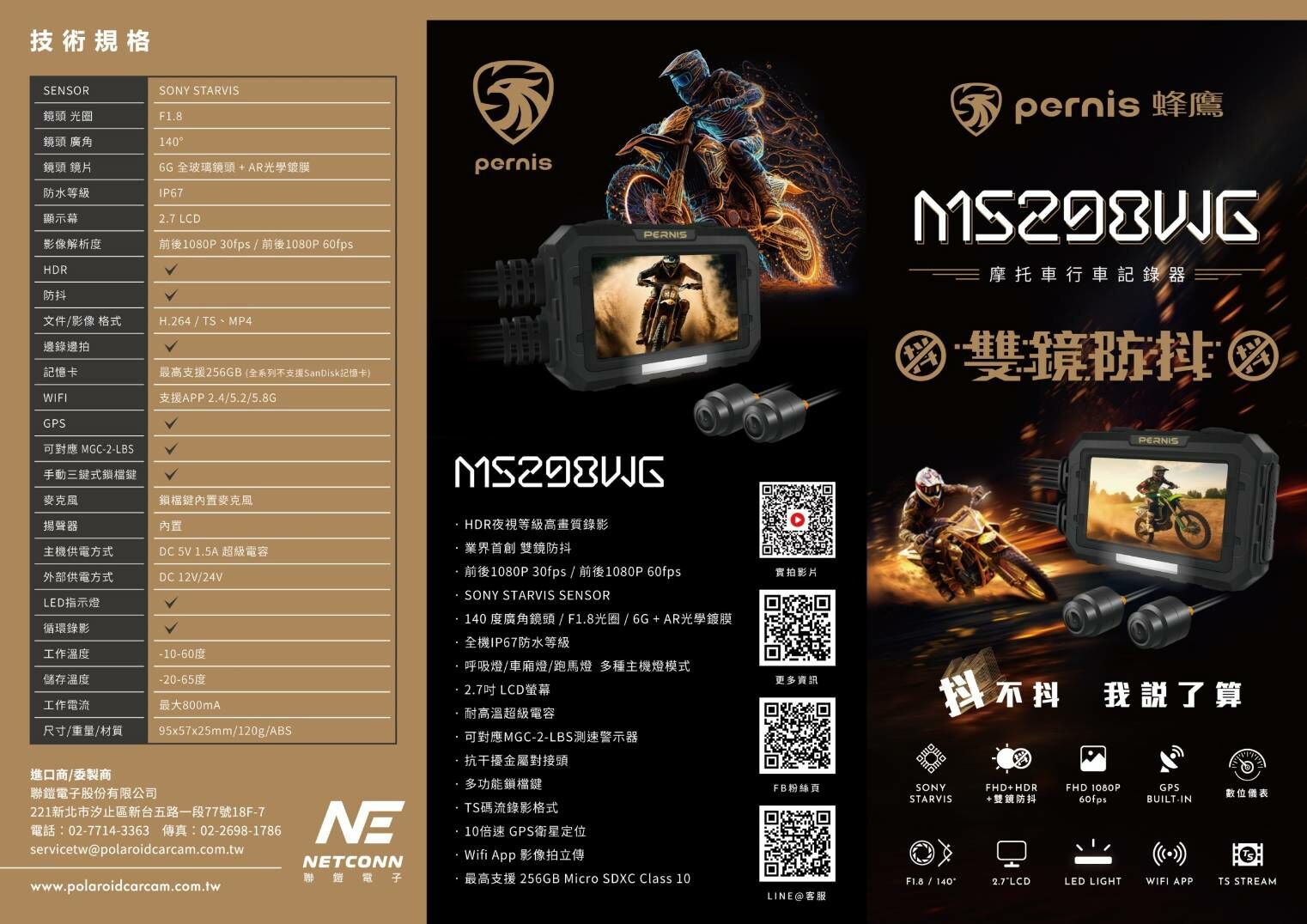 Polaroid寶麗萊 MS298WG 雙鏡防震 機車行車紀錄器