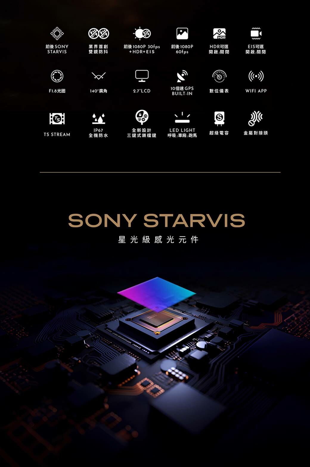· 前後1080P 30fps / 前後1080P 60fps