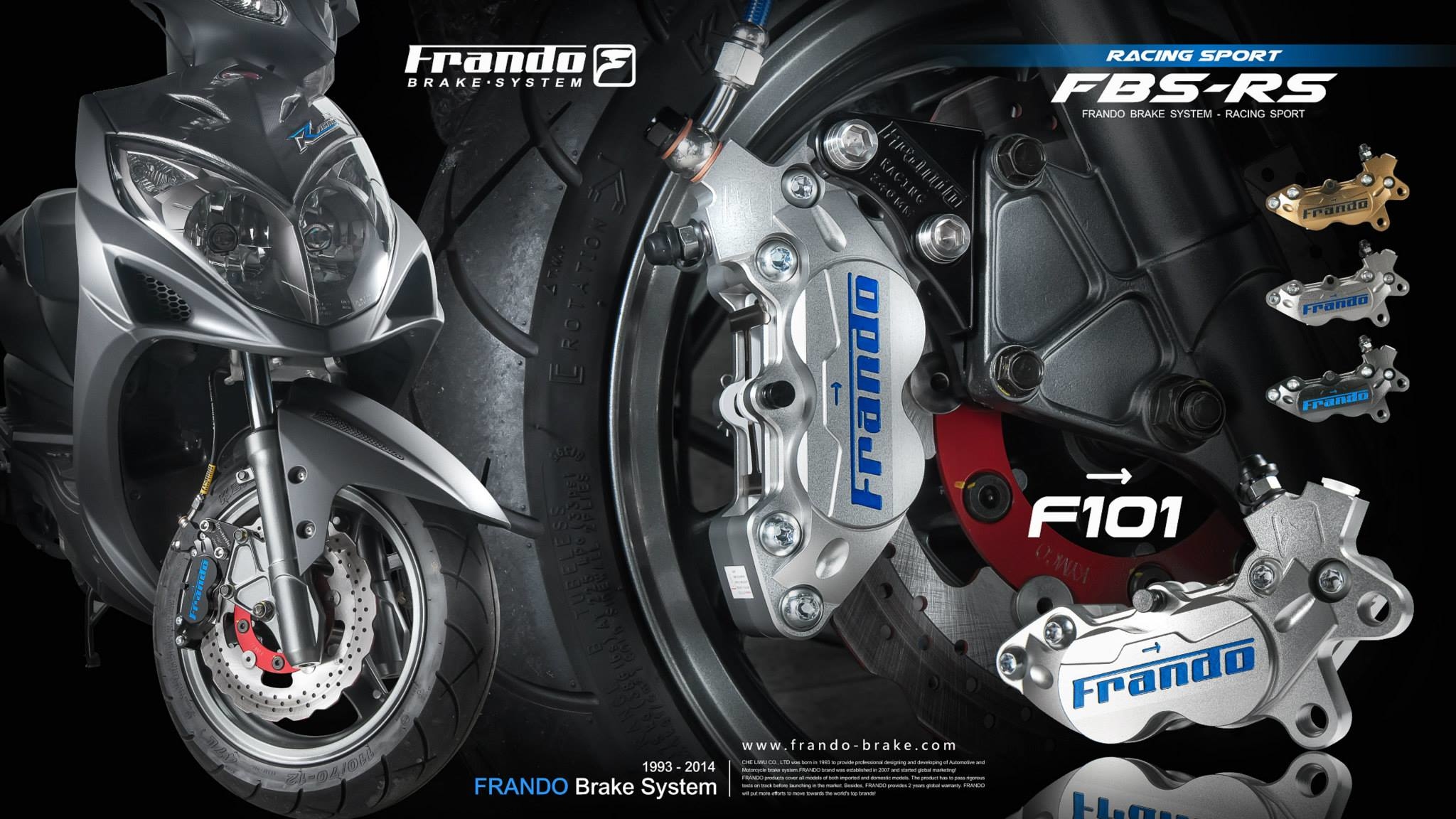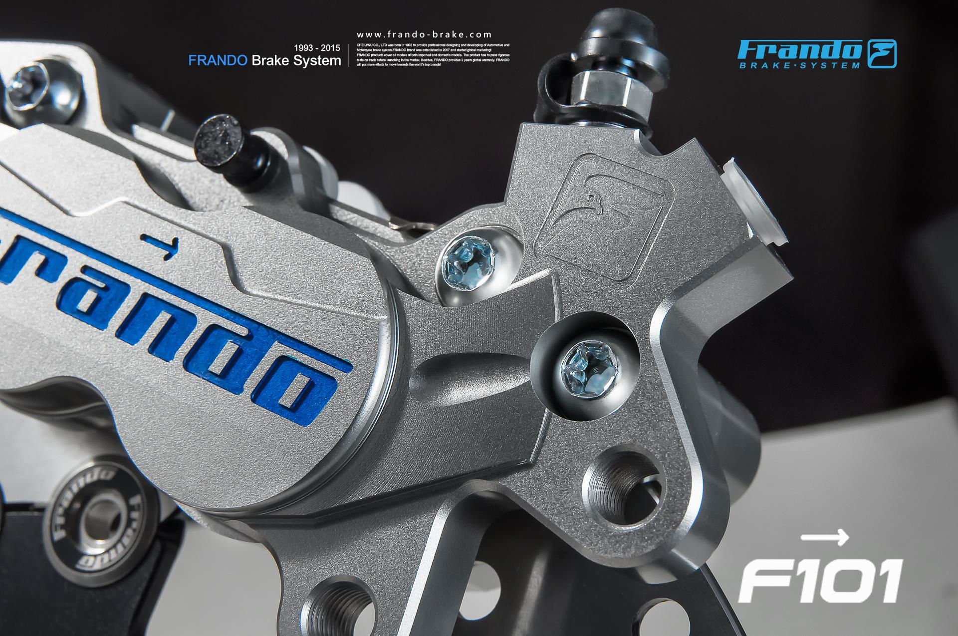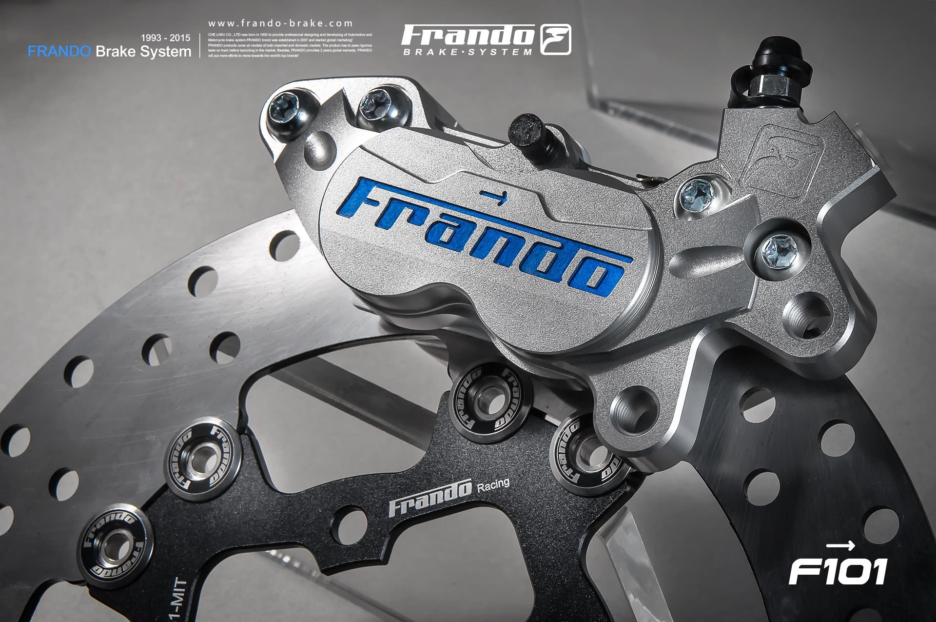 FRANDO可謂另外的台灣之光,外銷歐美日韓泰,甚至GP選手ROSSI的賽車學校都使用FRANDO雙子星小輻射卡鉗作為練習車配備,而汽車部分則是許多高端轎跑車安裝FRANDO的產品。