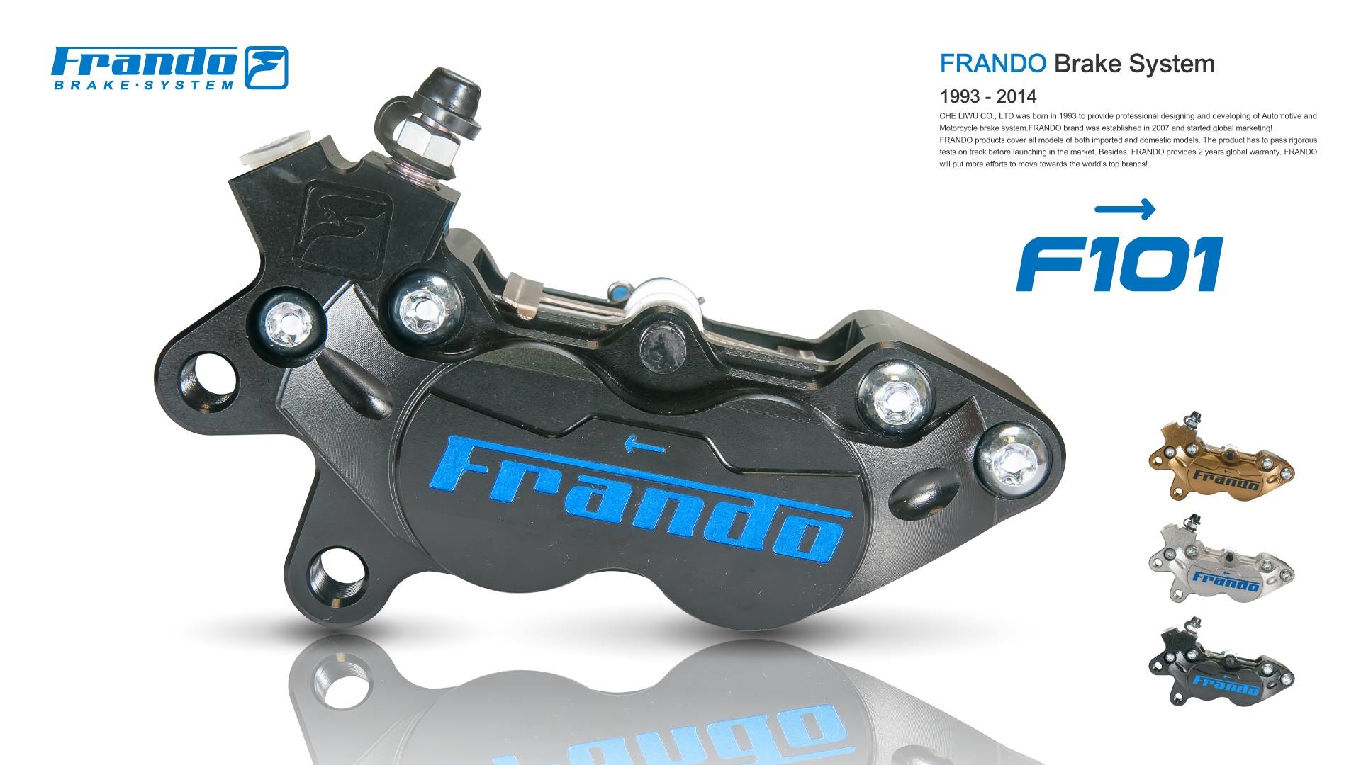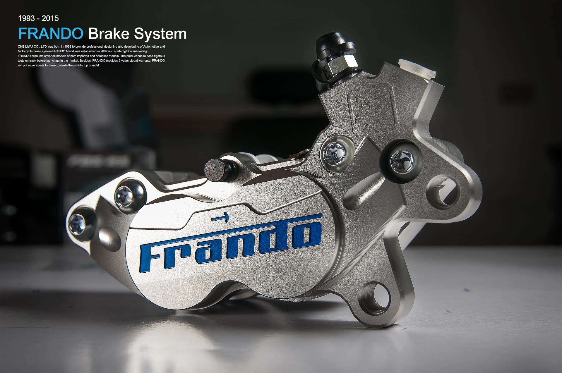 車力屋有限公司誕生於1993年,提供專業汽、機車制動系統設計開發;2007年創立FRANDO品牌行銷全球!產品涵蓋所有進口與國產各式車款;上市前均通過多項賽道嚴格測試,且提供2年全球保固。未來將持續努力朝世界頂尖品牌邁進!是目前台灣最具規模的煞車系統公司。